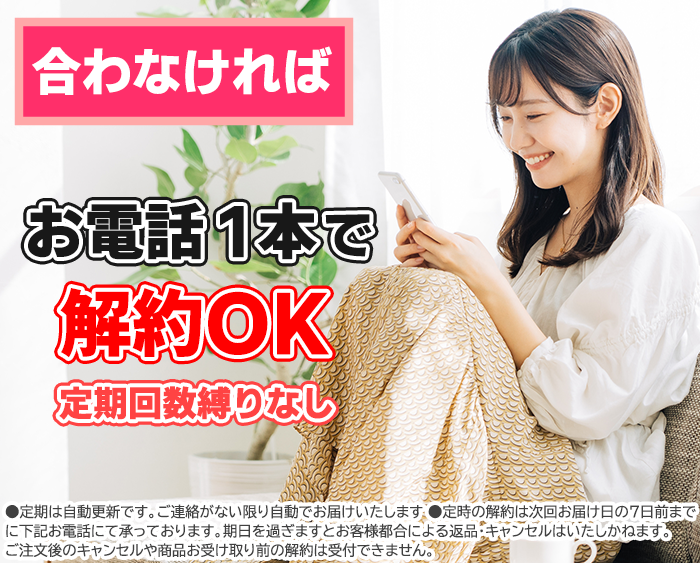 ※解約希望の場合期日あり、次回出荷予定日5日前(お届け希望日7日前)まで。